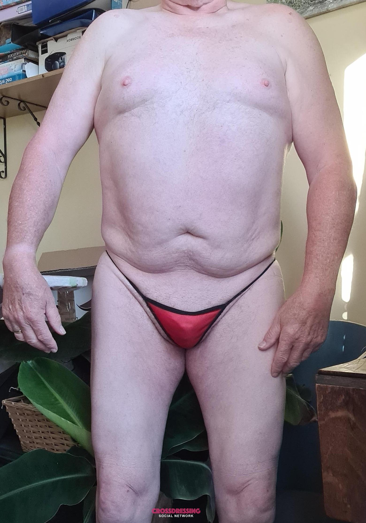 G string, bra and net dress.