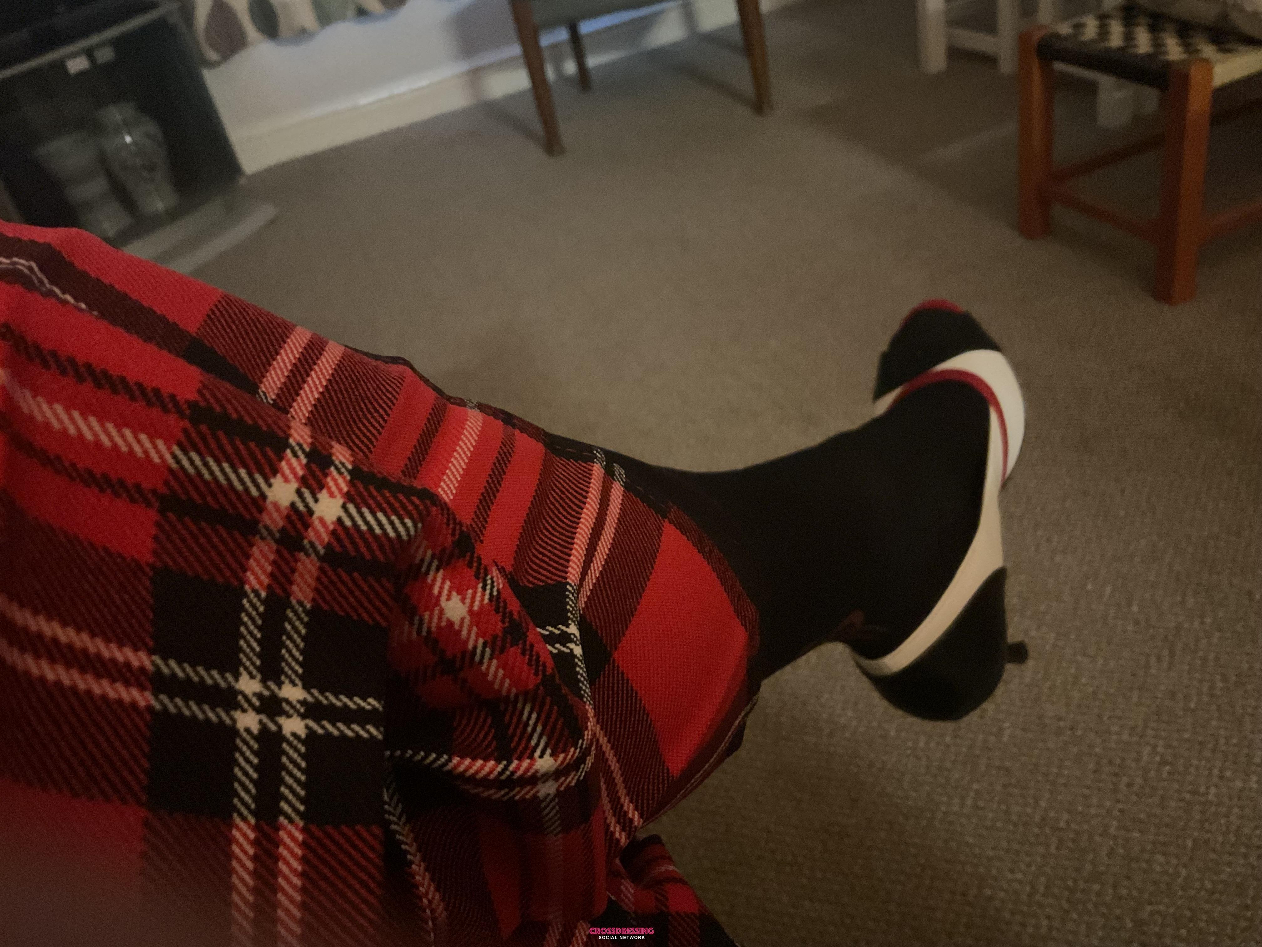 A tartan day coupled with black stockings underneath xx