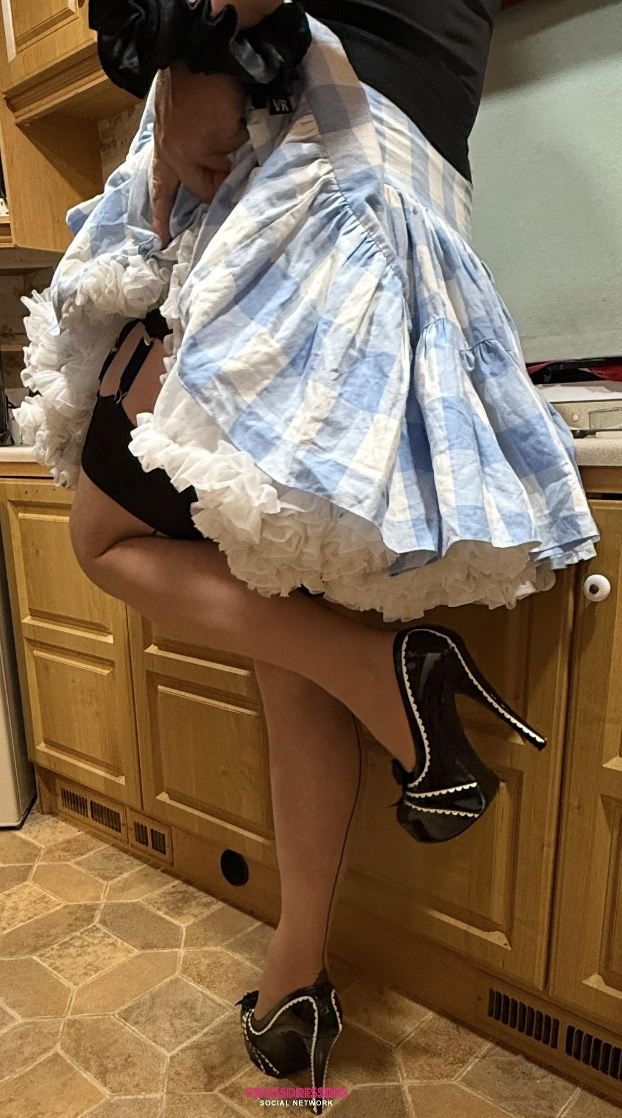 • How is everyone this morning ? I been dressed up all weekend in my skirt , petticoat, stockings and suspenders and heels on x x