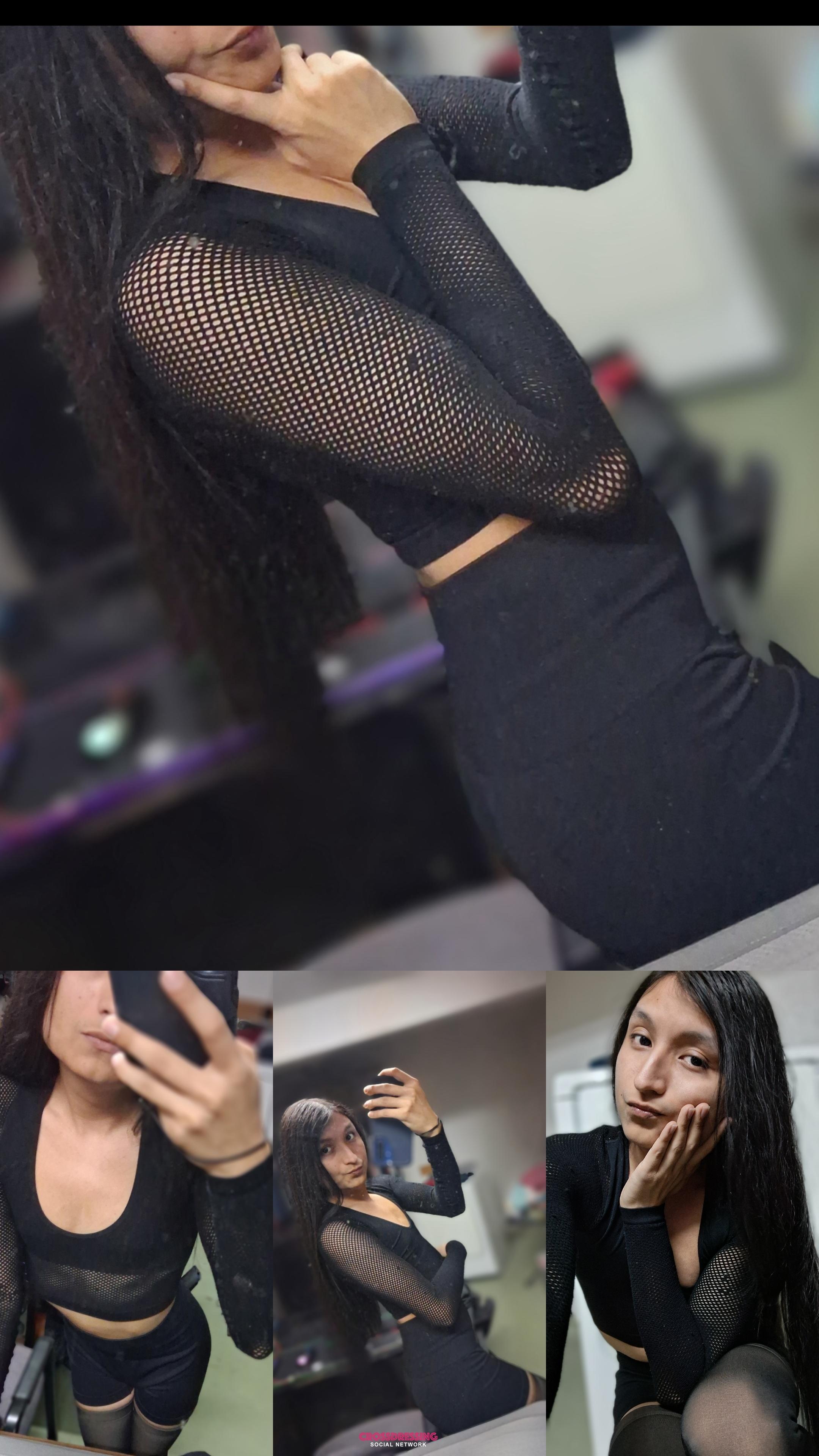 I locked the door, and this is always a nervous part, I always ask if he/she wants to carry on and most of the time it's a yes, so I take off my Joggers, revealing Stocking Tights and Tiny Sheer Thong, I grabbed a bag which had my Red Stilettos and a Basque which I asked Kev to help with as they can be a bitch to get on, zipped ones are best.. Kev then removed his Joggers and he had Crotchless Tights then grabbed his bad and surprised me with some 2" Stilettos which was a little bonus, he had regular black Knickers but only his regular T-shirt on top, I suggested he, tie/knotted his t-shirt at the front, which was perfect...