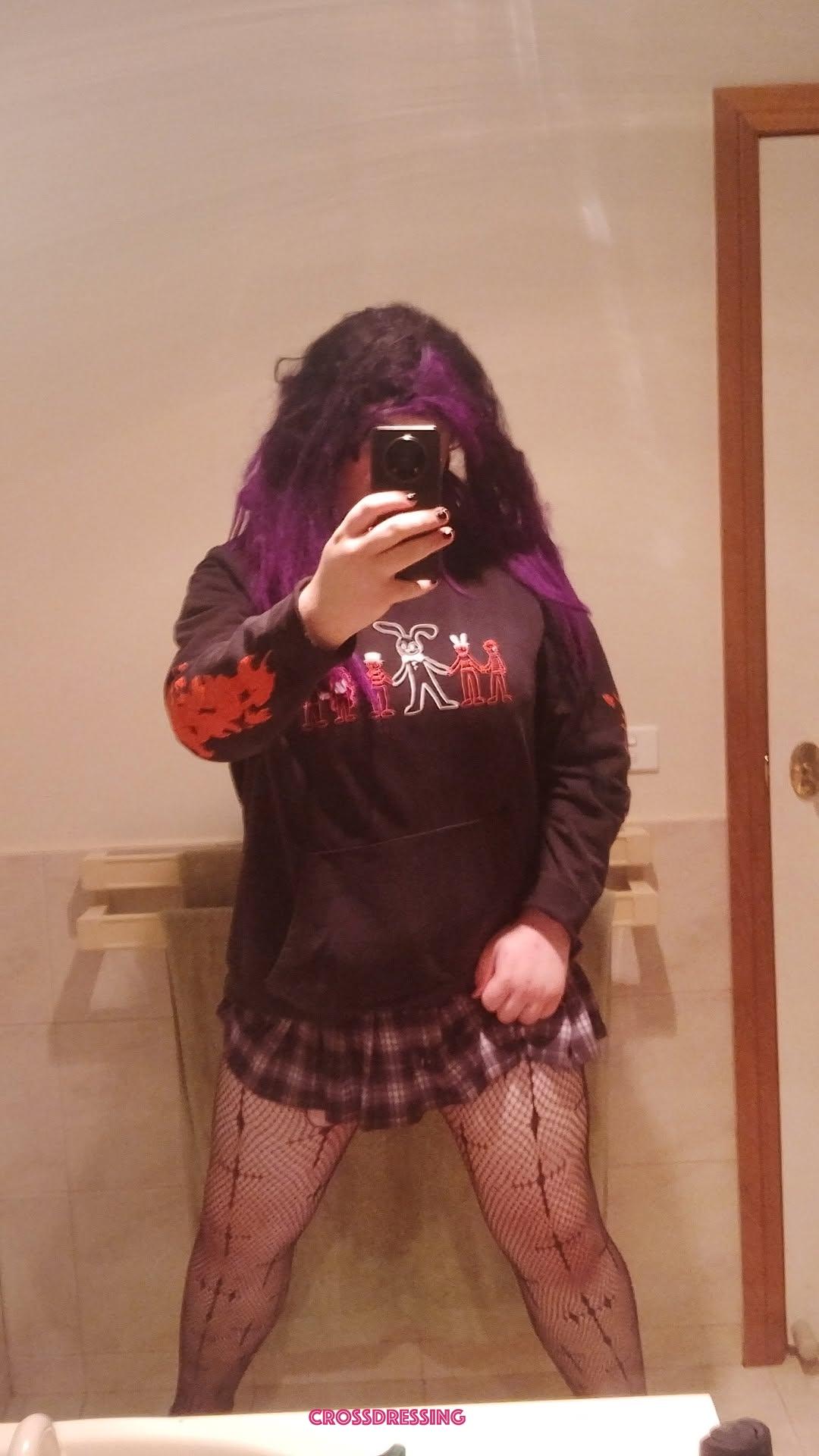 I locked the door, and this is always a nervous part, I always ask if he/she wants to carry on and most of the time it's a yes, so I take off my Joggers, revealing Stocking Tights and Tiny Sheer Thong, I grabbed a bag which had my Red Stilettos and a Basque which I asked Kev to help with as they can be a bitch to get on, zipped ones are best.. Kev then removed his Joggers and he had Crotchless Tights then grabbed his bad and surprised me with some 2" Stilettos which was a little bonus, he had regular black Knickers but only his regular T-shirt on top, I suggested he, tie/knotted his t-shirt at the front, which was perfect...