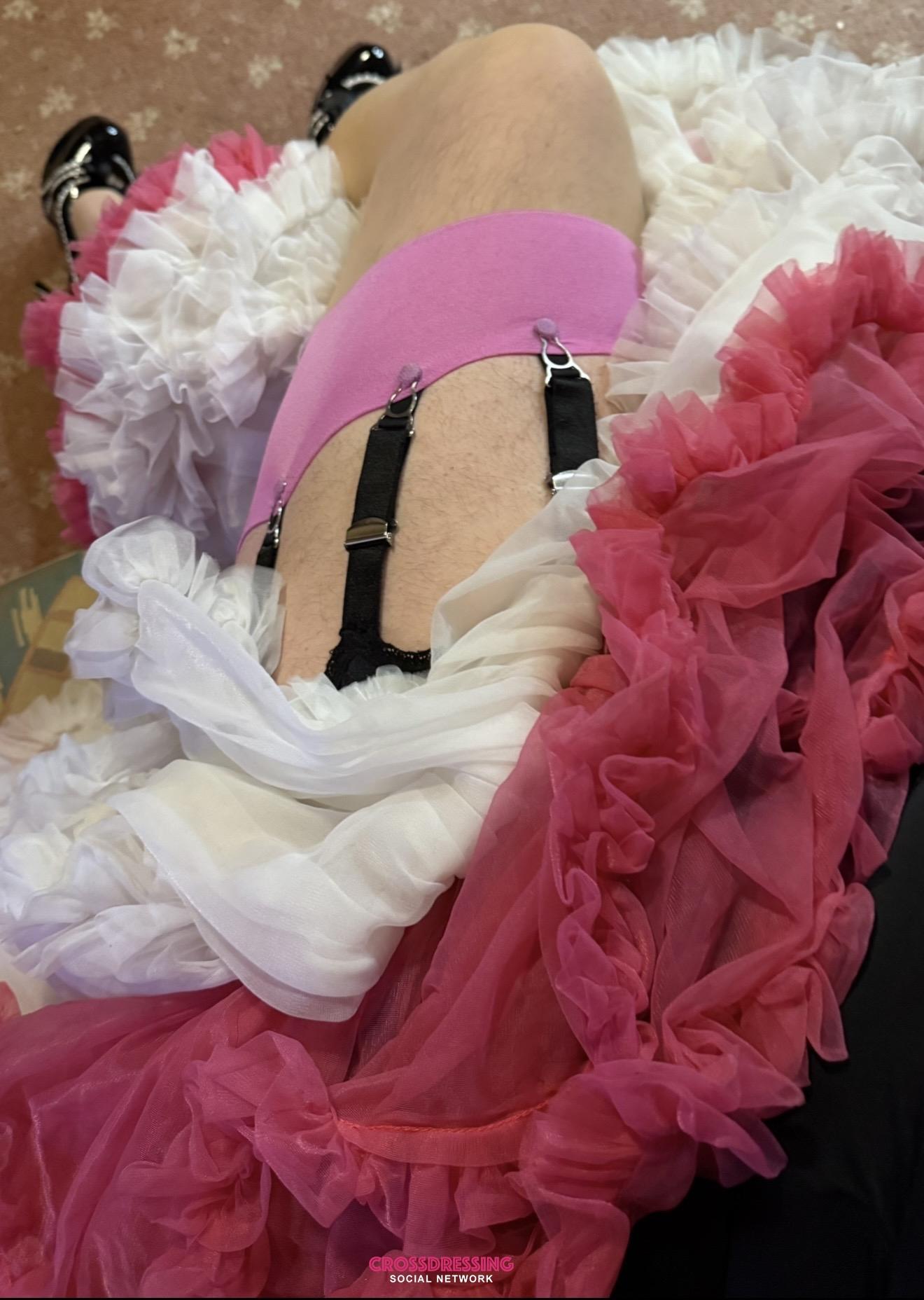 I locked the door, and this is always a nervous part, I always ask if he/she wants to carry on and most of the time it's a yes, so I take off my Joggers, revealing Stocking Tights and Tiny Sheer Thong, I grabbed a bag which had my Red Stilettos and a Basque which I asked Kev to help with as they can be a bitch to get on, zipped ones are best.. Kev then removed his Joggers and he had Crotchless Tights then grabbed his bad and surprised me with some 2" Stilettos which was a little bonus, he had regular black Knickers but only his regular T-shirt on top, I suggested he, tie/knotted his t-shirt at the front, which was perfect...